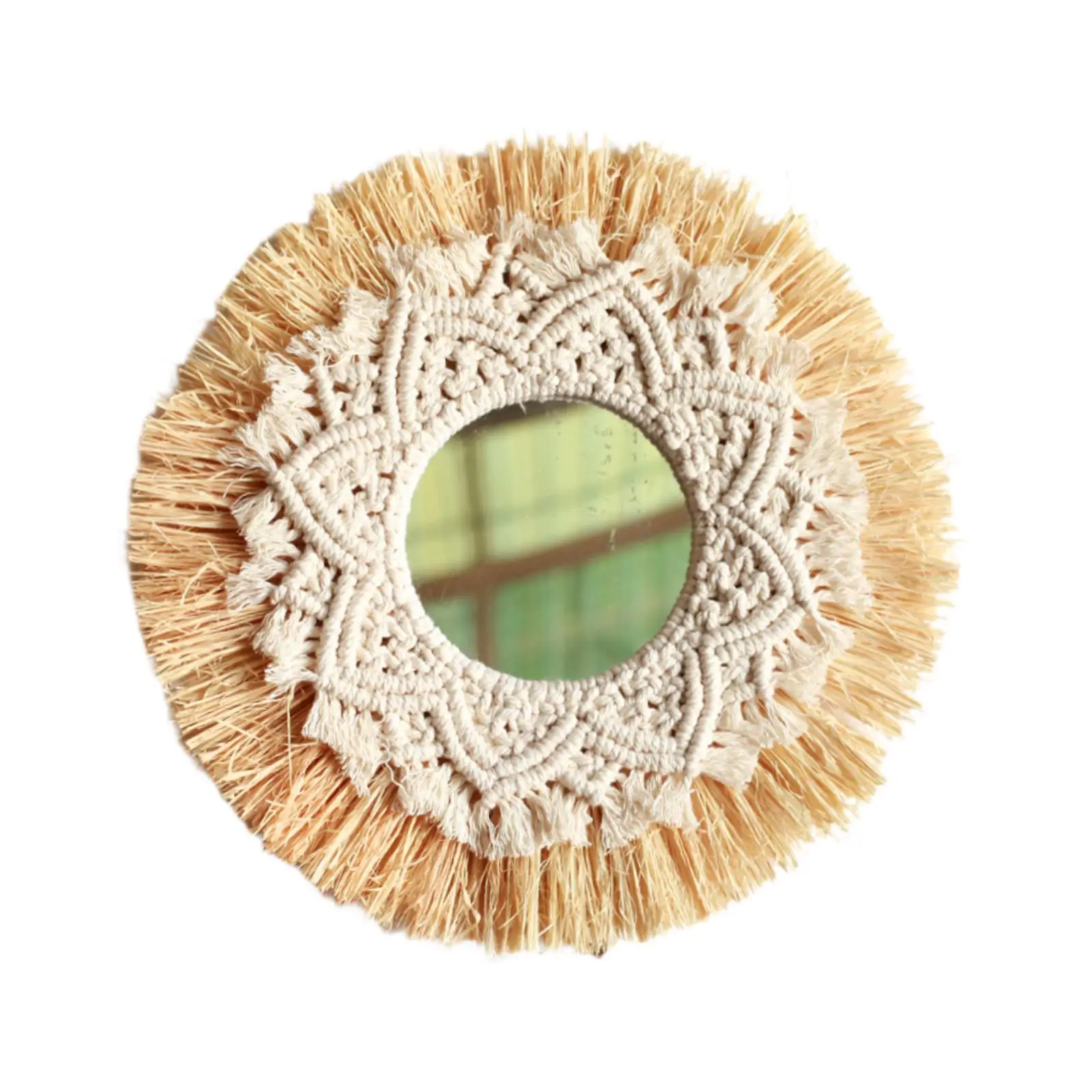 Macrame Hanging Wall Mirror Ornament Boho Wall Art Decoration Decorative Mirror